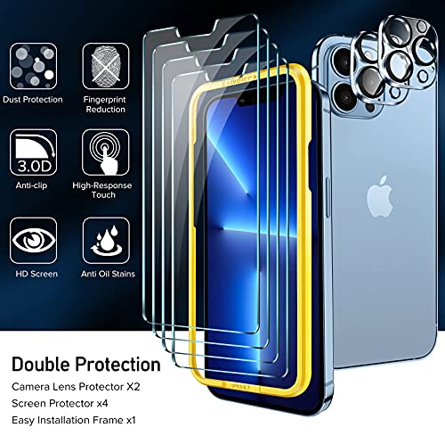 IVoler 4 Pezzi Pellicola Vetro Temperato Compatibile con iPhone 13 PRO 6.1 Pollici, con 2 Pezzi Pellicola Fotocamera e Strumento di Installazione, Pellicola Protettiva Protezione Schermo