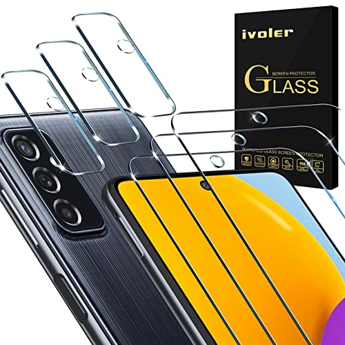 IVoler 3+3 Pezzi Vetro Temperato per Samsung Galaxy M52 5G, 3 Pezzi Pellicola Protettiva con 3 Pezzi Pellicola Fotocamera, Durezza 9H, Anti Graffio, HD Chiaro, Senza Bolle