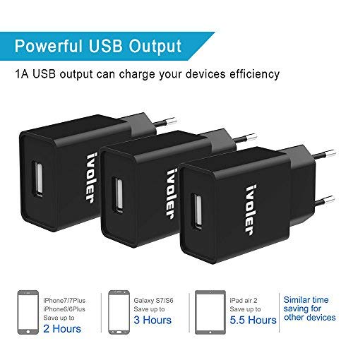 3 Pack - ivoler Super Mini Caricatore da Muro Portatile a 1 Porte (5W/ 1A) per iPhone Caricabatterie USB Alimentatore Caricatore da Parete per iPhone, iPad, Galaxy, Huawei,ASUS- Nero