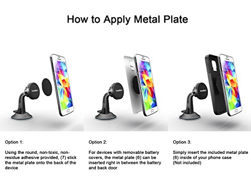 Facile da usare: La ventosa extra grande con SERRATURA afferra saldamente il supporto al cruscotto e la parabrezza. - a) Potete rimuovere l'adesivo della piastra e aderirsi sulla parte posteriore del telefono, b) o mettere la piastra tra il telefono e il guscio.
