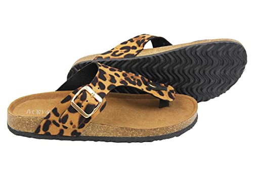 Ivory Castle Sandali da spiaggia da donna color avorio Leopard Toe Post 39 EU