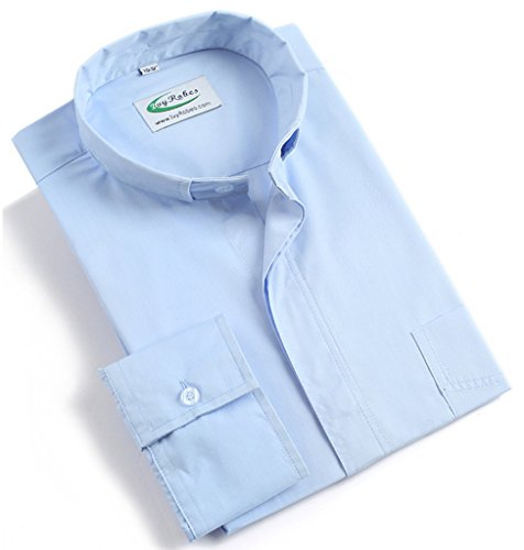 Ivyrobes, camicia da uomo, con colletto basso e maniche lunghe, colore azzurro cielo
