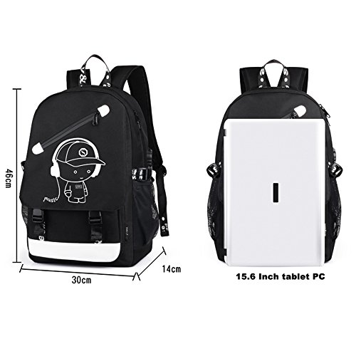Ivystore 15,6 "Noctilucence Laptop Backpack Casual Travel Rucksack Schoolbag Business Daypacks multiuso con porta USB di ricarica (Nero pirata)