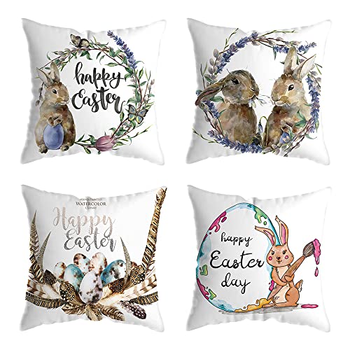IWILCS Federe per Cuscini pasquali, 4PCS Federa per Cuscino Pasquale Coniglietti, Federe per Cuscini Lino Pasquale, per la Decorazione del Soggiorno del Divano di casa di Pasqua, 45 x 45 cm