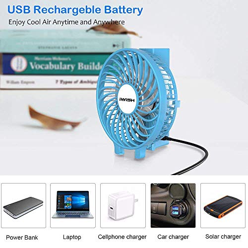 Iwish - Mini ventilatore elettrico portatile, da scrivania o palmare, ricaricabile con USB Blue