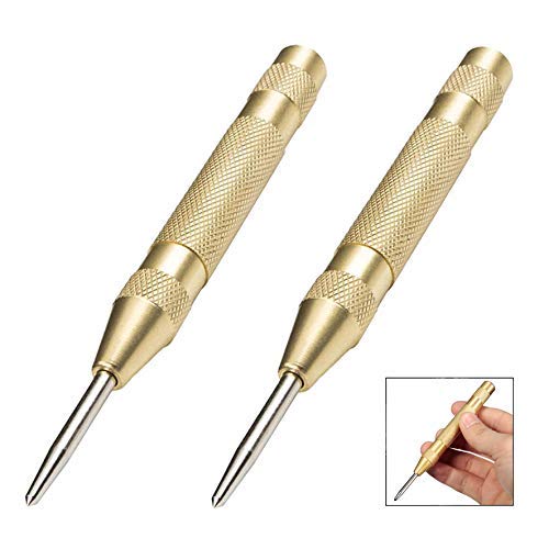 Iwobi Punzone Centrale Automatico,5 Pollici Punzone per Fori/Bulino Automatico a Molla in Ottone(Dorato)