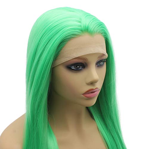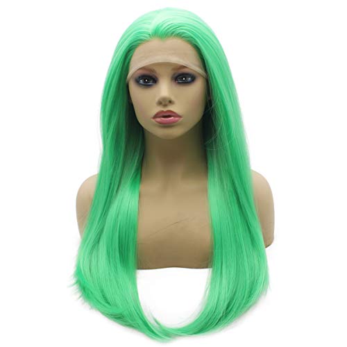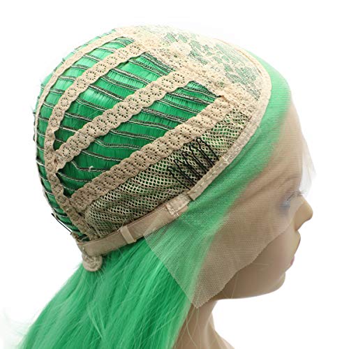 Iwona 24inch Long Lime Light Green Synthetic Hair Fiber Straight Lace Front Wig ...