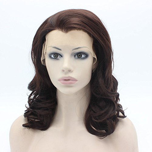 Iwona - Parrucca di capelli sintetici lunghi e ondulati con pizzo, colore marrone scuro