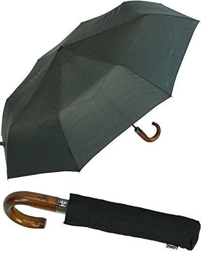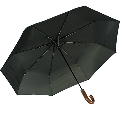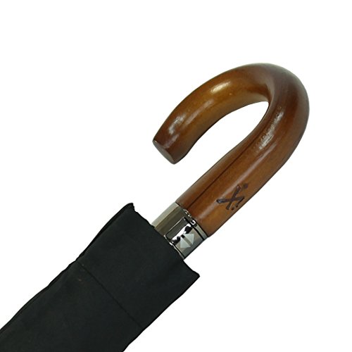 IX-brella Ombrello da uomo con manico in legno, grande ombrello tascabile, 121 cm, con apertura automatica, colore: nero, Nero, 124 cm