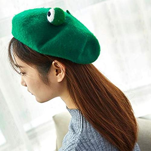 Ixkbiced Berretto Berretto Invernale da Donna con Occhi di Rana Verde Carino Berretto Invernale in Lana Sintetica Kawaii