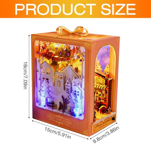 IXYHKB Book Nook Model Kit, Inserto DIY Book Nook Natale, Fai da Te Casa delle Bambole Kit, DIY Book Nook Kit con Luce LED, DIY Miniature Dollhouse Kit per Natale