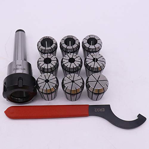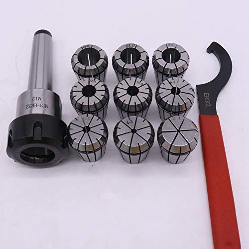 Iycorish 9Pz Er32 Spring Collets Set 2/4/6/8/10/12/16/18 / 20Mm 1 Pz Mt3 M12 Er32 Collet Chuck Morse Taper Holder Collet Set di Utensili Elettrici