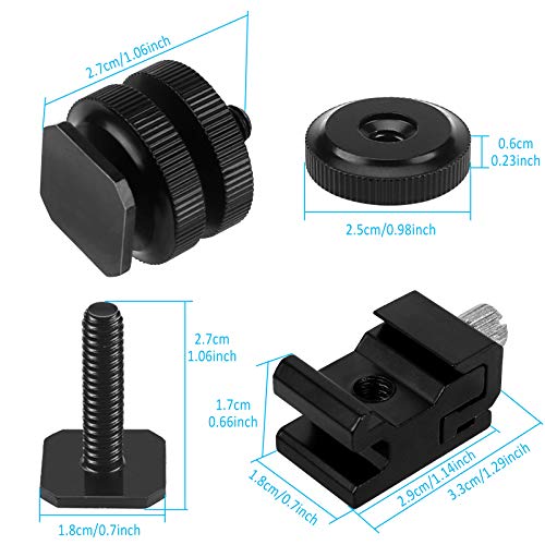 Iyowei 6 Pezzi Shoe Mount Flash da 1/4'' in Lega di Alluminio, in Clusci 3 Pezzi di Vite per Treppiede da 1/4'' per Adattatore Hot Shoe + 3 Pezzi di Shoe Mount per Fotocamera-Nero