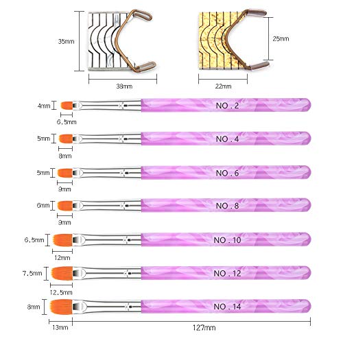 Pennelli per unghie multi-dimensioni: un totale di 7 spazzole per unghie, la lunghezza di ogni spazzola è di circa 13-14 cm, e le dimensioni delle setole è NO.2 (0,2 * 0,7 cm), NO.4 (0,4 * 0,8 cm), NO.6 (0,45 * 0,8 cm), NO.8 (0,5 * 0,9 cm) NO.10 (0,55 * 1,1 cm), NO.12 (0,6 * 1,2 cm), NO.14 (0,7 * 1,3 cm), dimensioni diverse possono soddisfare le diverse esigenze.