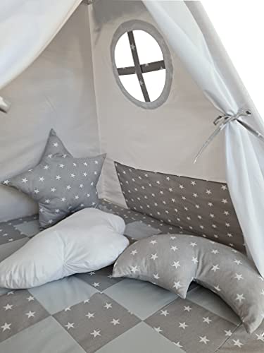 Tenda in 100% cotone. Dimensioni: base tipia: 120 x 120 cm, altezza dopo l'impatto: 145 cm, colore: grigio, bianco, come mostrato nelle foto