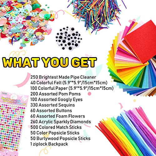 Artigianale Feltro Includono: 250 detergenti per tubi di colore lucido, 40 pennarelli colorati, 100 pennarelli colorati in carta, 200 pompon multicolore, 100 occhi googly, 330 paillettes separate, 60 bottoni, 60 fiori, 260 diamanti acrilici lucidi, 500 bastoncini da corrispondenza, bastone per ghiaccioli, 1 borsa a chiusura lampo.