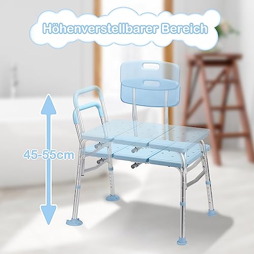 Izrielar Sedia per vasca da bagno, sgabello da doccia per anziani, sedia da doccia per vasca da bagno con schienale e braccioli, sgabello da bagno regolabile in altezza, capacità di carico 136 kg,