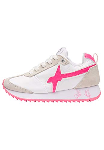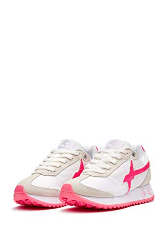 W6yz KIS J-Sneaker in Suede e Tessuto Tecnico-Bianco, Fuxia 35