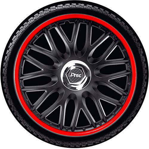 J-Tec J15514 Set Di 4 Copricerchi Orden R 15 Pollici Nero/Rosso + Anello Cromato, Red/Black