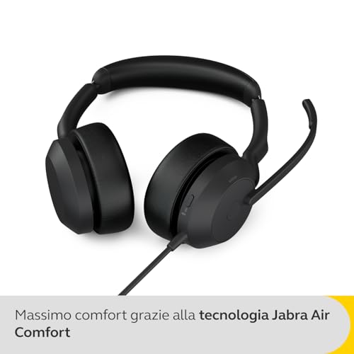 Jabra Evolve2 50 Cuffie Stereo cablate con Jabra Air Comfort, microfoni con cancellazione del rumore, cancellazione attiva del rumore - Per tutte le principali piattaforme UC, Zoom, Google Meet - Nero