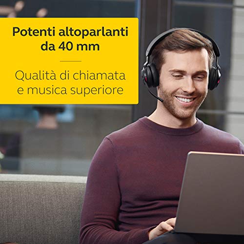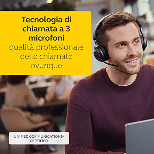 Jabra Evolve2 65 PC Cuffie Wireless, Cuffie On ear certificate UC, con funzione Noise Cancelling, Batteria a lunga durata, Adattatore Bluetooth USB-A, Nero