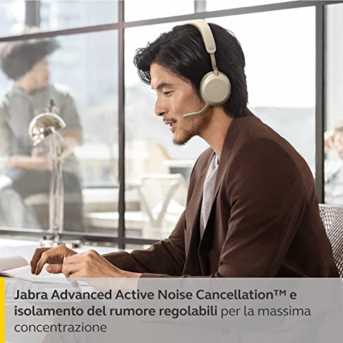 Jabra Evolve2 75 Cuffie Wireless per PC con 8 Microfoni - Cuffie stereo a doppia imbottitura con cancellazione attiva del rumore regolabile, adattatore Bluetooth USB-A e compatibilità UC - Beige