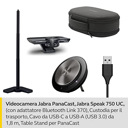 Jabra PanaCast Meet Anywhere+ Kit videoconferenze, Webcam Panoramic-4K 180°, Jabra Speak 750, Certificazione UC, funziona con Teams, Zoom, Google Meet, Table Stand, custodia viaggio, cavo USB 1,8 m