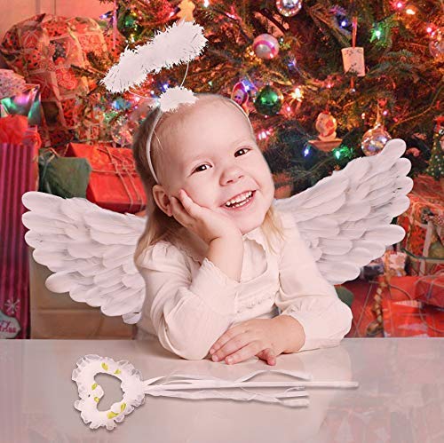 Adatto per: ali d'angelo e fascia Halo per capelli per bambini, ragazze, bambini. Comode ali d'angelo con fascia Halo abbinata. Le ali possono essere piegate al centro.