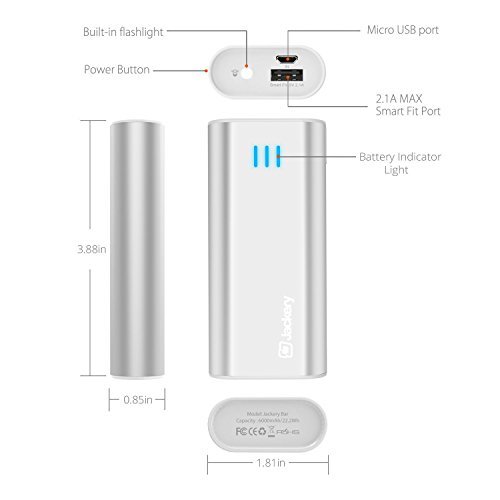 Jackery Bar Batteria Esterna Portatile da 6000mAh - Power Bank Tascabile Ultra Compatto con Tecnologia SmartFit per iPhone, iPad, Samsung, Nexus, HTC e Altri (Argento)