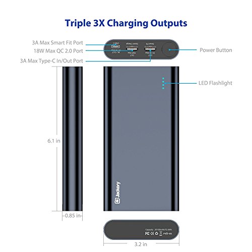 Jackery [Il Primo Caricatore Portatile QC2.0 + Type 20100mAh Caricabatterie Portatile [Qualcomm Certificato] Quick Charge 2.0 Porta USB-C/Type-C per iPhone, Samsung, ASUS, LG, HTC, Tablet, ECC.