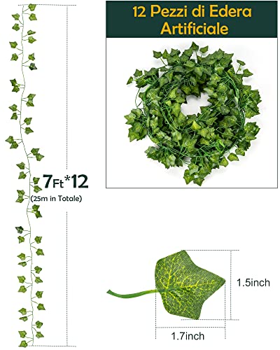 【Contenuto della Confezione】La confezione include 12 pezzi edera finta (ciascuna lunga 2m e ha circa 80 foglie), una stringa luminosa a LED lunga 10m, un telecomando e 15 nastri verdi, perfette per decorare pareti, balconi, scale, mobili, matrimoni, vetrine, ecc.