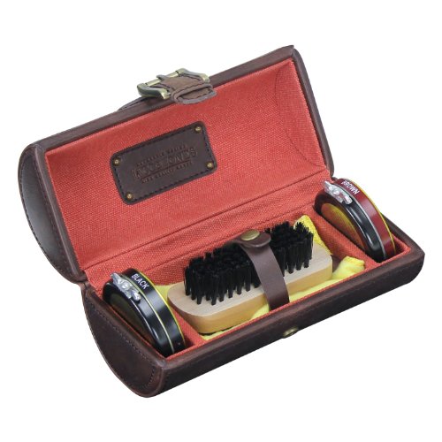 JACOB JONES Brown Shoe Shine Kit with Orange Canvas Lining