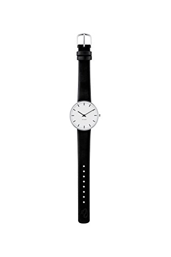 Arne Jacobsen, orologio unisex 53201, al quarzo, con quadrante analogico di colore bianco e cinturino in pelle nera