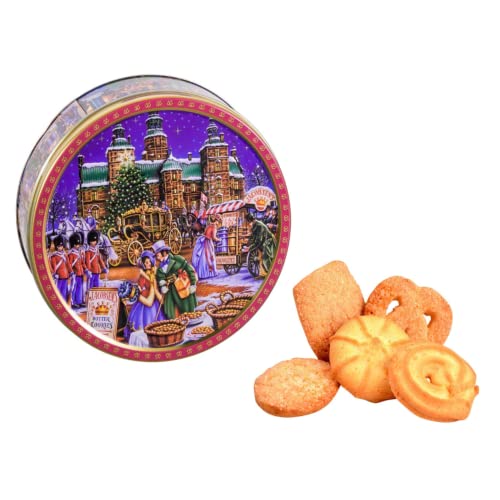 Jacobsens | Biscotti Latta Metallo Tonda Decorata a Rilievo Castello | Biscotti al Burro e Pezzetti di Cioccolato - 400 Gr | Lattine Biscotti Danesi al Burro