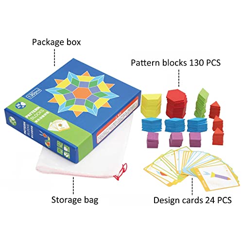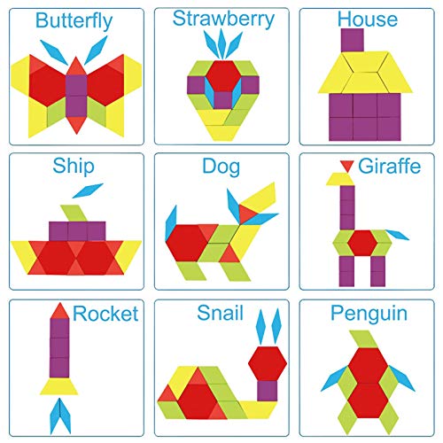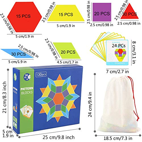 GIOCHI EDUCATIVI: The Pattern Blocks Set è progettato per rendere l'apprendimento divertente e bello! Per un bambino, i colori brillanti e le forme multiple incoraggiano la stimolazione sensoriale e lo sviluppo del cervello. Questo giocattolo modello può esplorare geometria, matematica e concetti di misurazione, migliora la capacità cognitiva di colore e forma, ideale per sviluppare le capacità di coordinazione occhio / mano, immaginazione e abilità motorie.