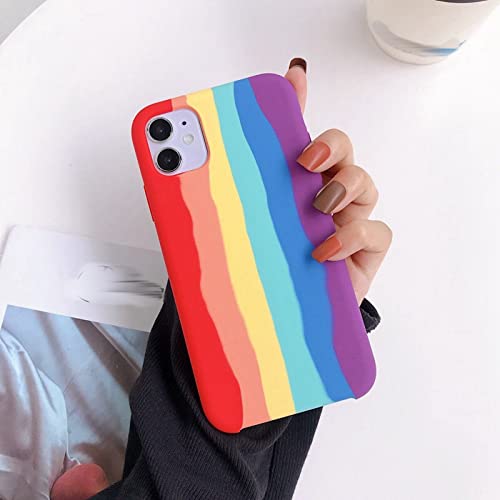 JACTZ Cover iphone Custodia In Silicone Liquido Arcobaleno Per Iphone 11 12 13 14 Pro Maxsoft Custodia Antiurto-For Iphone 11,Red Rainbow