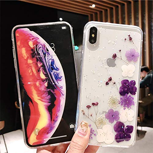 Cover iPhone XS, Creativo Vero Fiori Design: utilizzando materiale TPU di alta qualità petali, ogni custodia è fatta a mano, i fiori e le foglie sono accuratamente essiccati, fiori sono incorporati in un guscio trasparente, davvero bello e non scompariranno mai.