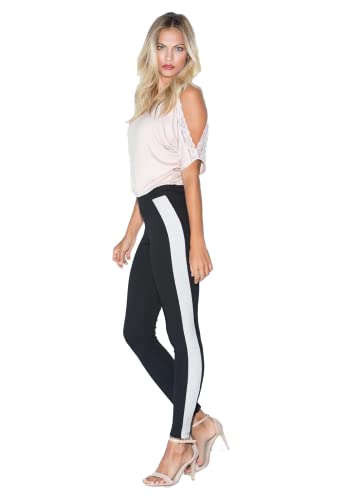 JADEA Leggings Donna Cotone Elasticizzato con Profili in Pelle Nero 4168 (Argento, 40)