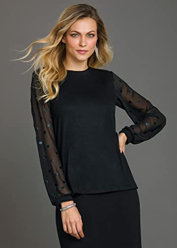 JADEA Maglia Donna sotto Giacca Manica Lunga Chiffon Pois 4274 Nero (S)