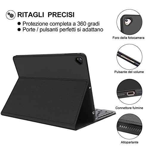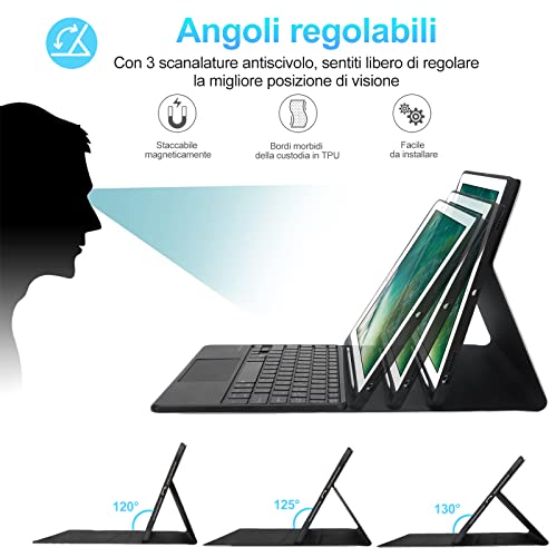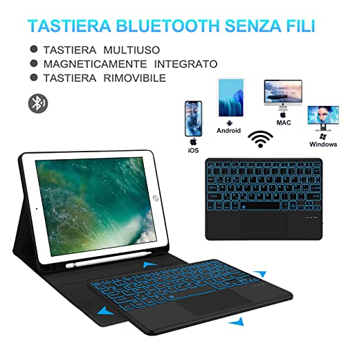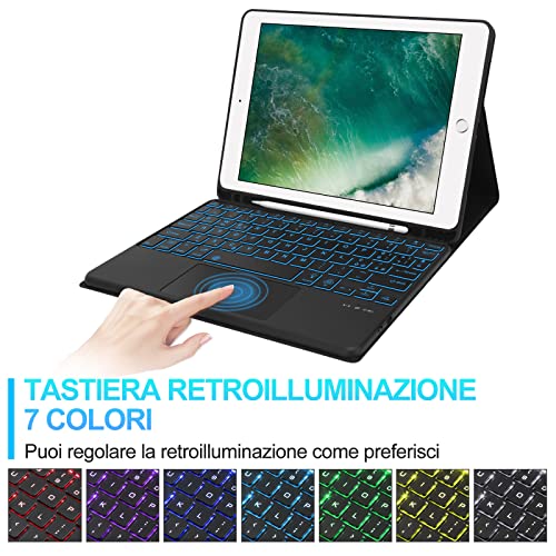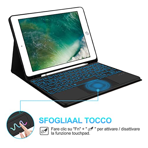 JADEMALL Custodia con Tastiera Trackpad per iPad 9.7", iPad 6th/5th Generazione 2018/2017, iPad Air 2/1 2014/2013, Italiano QWERTY Tastiera Retroilluminata Magnetica Staccabile per iPad 9.7, Nero