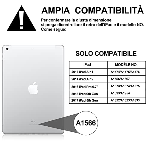 Compatibilità: Custodia con tastiera trackpad per iPad 9.7, iPad 6/5 Generazione 2018/2017, iPad Air 2/1 2014/2013. Si prega di controllare il modello del proprio iPad prima di acquistare per evitare errori di acquisto.