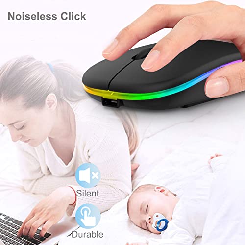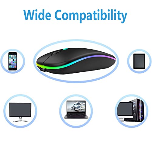 Leggero e Portatile & Luce LED: la dimensione del mouse è di circa 4,4 x 2,28 x 0,98 pollici, che è molto adatto per i viaggi e può essere facilmente inserito nella borsa del computer portatile, il che è super salvaspazio. Il mouse Bluetooth è dotato di luce a LED, che fornisce un'illuminazione confortevole e crea un'atmosfera piacevole per il lavoro e l'intrattenimento.