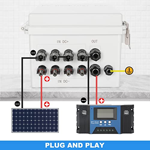 2.【Facile da Usare】il cablaggio interno è già collegato, plug and play, fornendo una soluzione semplice per il collegamento dei pannelli solari. La PV combiner box ha un volume ridotto e può essere facilmente fissata a qualsiasi superficie normale con viti.