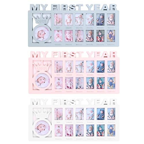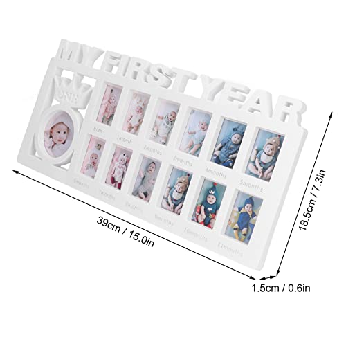 Jadeshay Cornice per Foto per Neonati Cornice per Foto per Bambini squisita con 12 cornici per Foto Piccole Che registrano la Crescita mensile del Bambino per Regalo(Bianco)