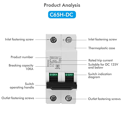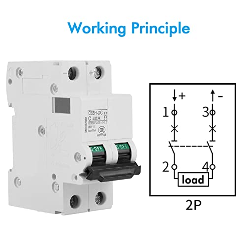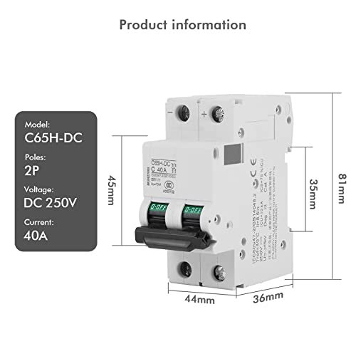 Jadeshay Interruttore Automatico Miniaturizzato DC, Interruttore Automatico CC a Bassa Tensione 2P 40A 250V per Sistema Solare Fotovoltaico,Famiglia Proteggere Interruttore Aria