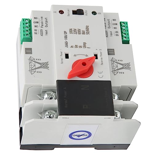 Jadeshay Interuptore di Trasferimento, Interruttore di Trasferimento Automatico a Doppia Alimentazione, Controller a 2 Vie Ininterrotto, ZGQ5-100/2P 220V