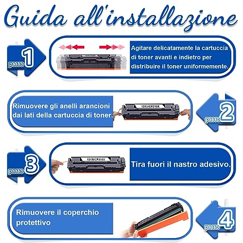 ★【Contenuto】 Jagute 131X 131A CF210X CF211A CF213A CF212A Cartucce de toner, Confezione da 4: (1 Nero,1 Ciano,1 Magenta,1 Giallo). Let oner Jagute utilizzano inchiostro a base di colorante con una perfetta fluidità di stampa.