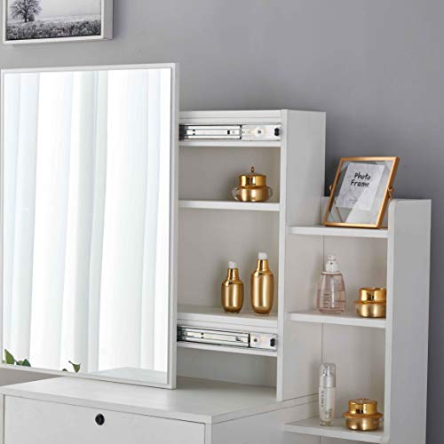 JaHECOME Tavolo da toeletta con sgabello, tavolo da toeletta angolare, tavolo da trucco con specchio, 5 scuole girevoli e sgabello in legno MDF per camera da letto (bianco C)