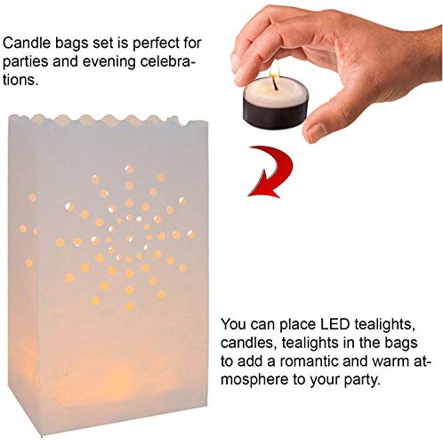 Perfetto per l'occasione: la borsa per candele è adatta per uso interno ed esterno. I sacchetti di lanterna di carta sono ideali per matrimoni, compleanni, Natale, San Valentino, festeggiamenti, cene, appuntamenti, feste o altri eventi.