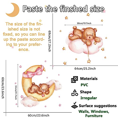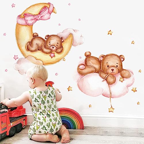 JAHEMU Sticker da muro Orso con Stella Adesivi Murali bambini Ragazzi e Ragazze Decorazione Soggiorno Camera Da Letto